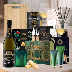 Cheers to effortless indulgence! This luxurious hamper is the perfect blend of bubbly, grazing goodies and self-care treats, made for celebrations, birthdays, thank you gifts or a well-deserved night in. Featuring Brown Brothers Prosecco, gourmet snacks, a beautiful cheese board set, plus calming home fragrance and pamper essentials; it’s the ultimate β€œtreat yourself” experience in one stunning gift.Β