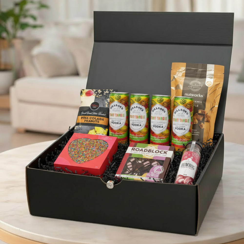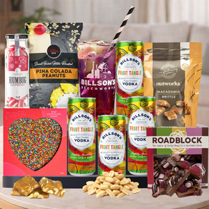 The Billson's Cocktail Hamper is the perfect gift for a variety of recipients. Ideal for cocktail lovers who appreciate a refreshing and unique drink experience, this hamper offers Billsonβs Vodka Fruit Tangle, a ready-to-drink cocktail made with pure alpine spring water. Itβs also a treat for snack enthusiasts, with a selection of gourmet delights like Pina Colada Infused Peanuts, macadamia brittle, and sweet chili chips that pair perfectly with the beverages. Foodies and adventurous eaters will enjoy the diverse flavors, while the hamper is also perfect for celebrating special occasions, whether itβs a birthday, anniversary, or any other moment that calls for a toast. Itβs an excellent choice for busy professionals who need a break, as well as friends, loved ones, or colleagues looking for a fun and thoughtful gift. Whether youβre gifting to someone who enjoys relaxing with a drink or someone who loves a little indulgence, this hamper is sure to impress with its premium selection and customizable extras.