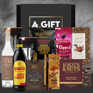 The Espresso Martini Cocktail Hamper is the ultimate gift for coffee lovers and cocktail enthusiasts alike. This gourmet hamper is packed with all the essentials for a perfect Espresso Martini experience, including G52 Rich Coffee Botanical Vodka and Tia Maria Liqueur, paired with Vittoria Espresso Ground Coffee for the ultimate coffee kick. To complement the cocktail, the hamper also features delicious coffee-inspired snacks such as Ceres Organics Espresso Coconut Wafer Rolls, Chocamama Dark Chocolate Liquorice Bullets, and Whittakers Roasted Supreme Coffee in Dark Chocolate. With an added touch of indulgence from Hunterβs Gourmet Hand Cooked Barbecue Chips and Macβs Shortbread Fingers, this hamper provides a delightful experience from start to finish. Beautifully presented in a gift box, the hamper includes a free personalized greeting card, and you can make it even more special with customizable options like a personalized candle or chocolate box. Available for delivery across Australia, this hamper is perfect for birthdays, anniversaries, or simply treating someone special to a luxurious coffee cocktail experience.