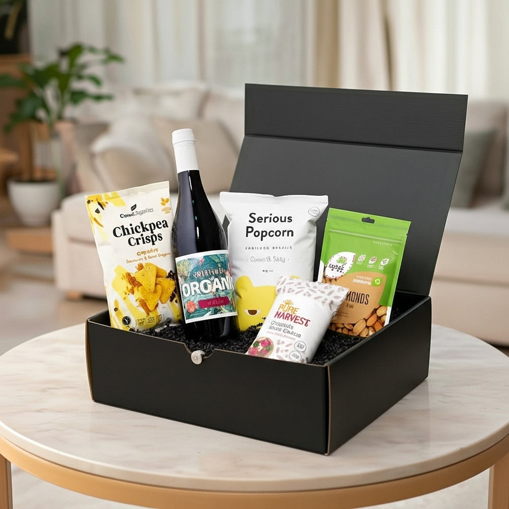 All items in this hamper are certified organic, making it a great gift for those who value eco-friendly and health-conscious choices. The wine and snacks are sustainably sourced, offering a responsible gift option for the environmentally conscious recipient.
