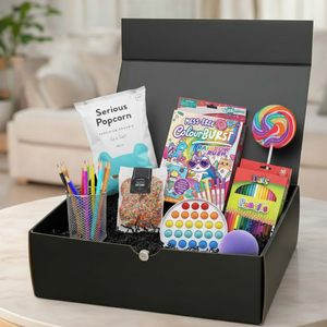 The kids' hamper was a hit! The colouring book and rainbow popit were instant favorites. The bouncy ball and snacks made it a perfect gift.