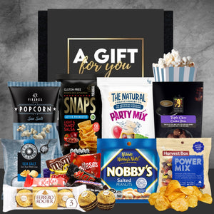 Gift hamper packed with snacks heβll love.