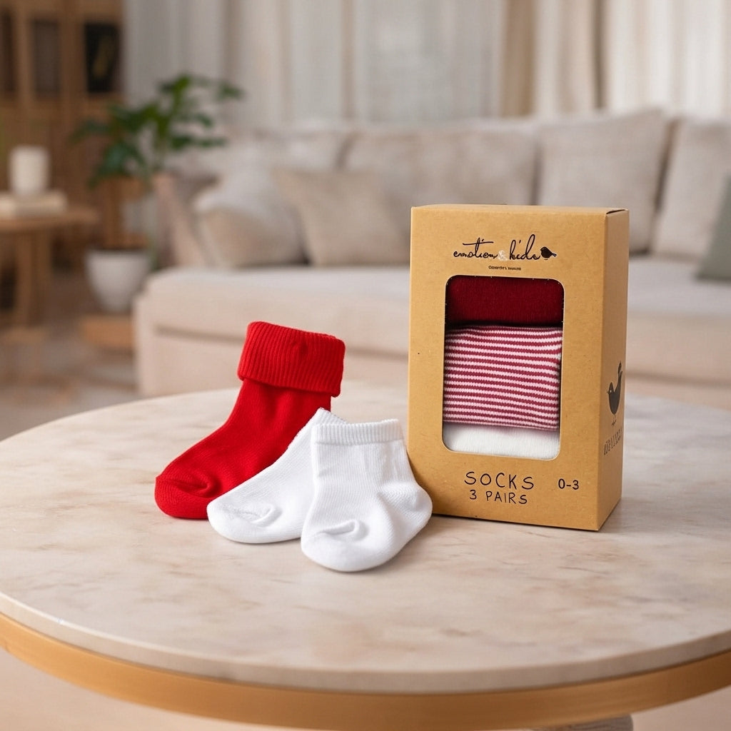 Emotion & Kids Red Socks 3pk 0-3months - Tastebuds